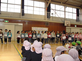 最後は体育館で♪小学校へいこうよ をみんなでやりました。
